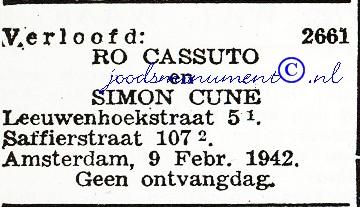 JUDITH VAN LOEN was born 15 Nov 1919 in Amsterdam, Holland. She married LOUIS SIBEIJN 27 Apr 1938 in Amsterdam, Holland. He was born 1913 in Amsterdam, Holland, and died 1980 in Amsterdam, Holland.