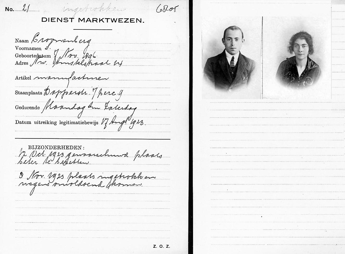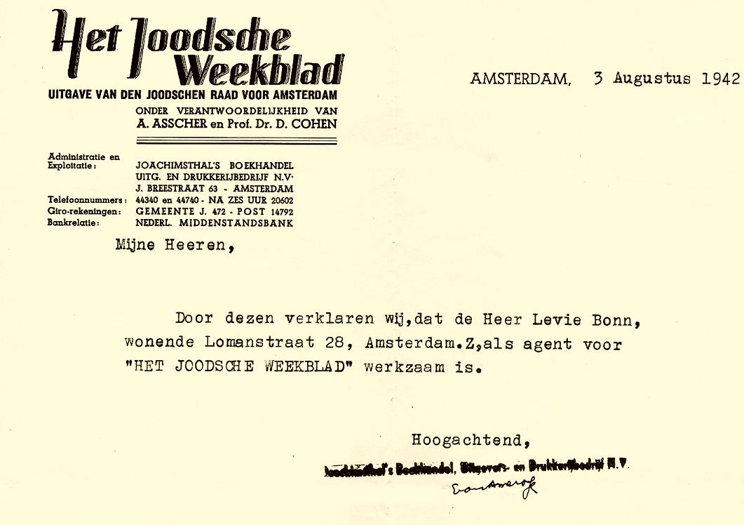 According to a list with shops of Jewish owners, compiled by the Amsterdam police in 1940, this family had a cigar shop, address: Rozengracht 214 in Amsterdam.