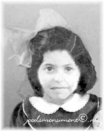4. JEANNETTE LEAH VAN LOEN, b. 14 Sep 1930, Deurne, Noord-Brabant, Holland; d. 11 Jun 1943, Sobibor death camp, Poland - Holocaust victim.