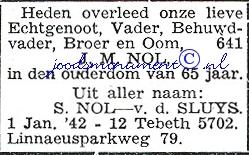 HERMAN LOPES DIAS born 23 Dec 1914 in Amsterdam, Holland, and died 30 Sep 1942 in Auschwitz concentration camp, Poland - Holocaust victim. He married BLOEME VAN THIJN 30 Jul 1936 in Amsterdam, Holland, daughter of HELA VAN THIJN and SARAH POLAK. She was born 13 Dec 1917 in Amsterdam, Holland, and died 29 Jul 1942 in Auschwitz concentration camp, Poland - Holocaust victim.