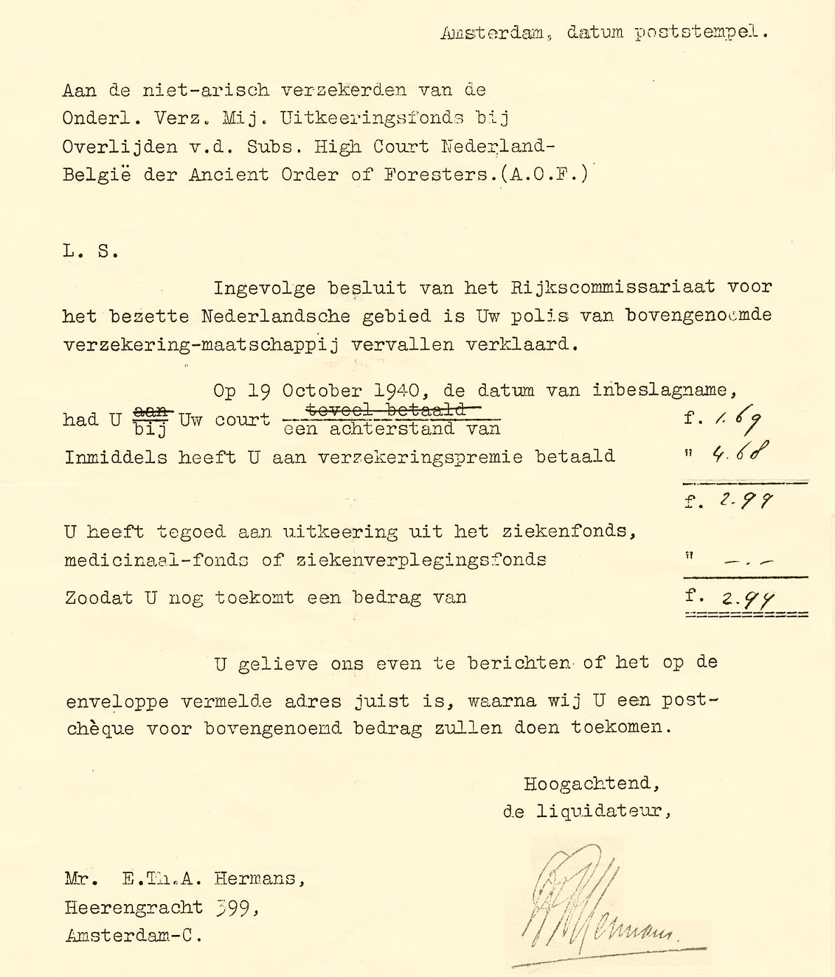 SIMON HEKSTER: Resided with family, February 1941: Ruyschstraat 48 II, Amsterdam, Holland. Occupation: Debt collector.