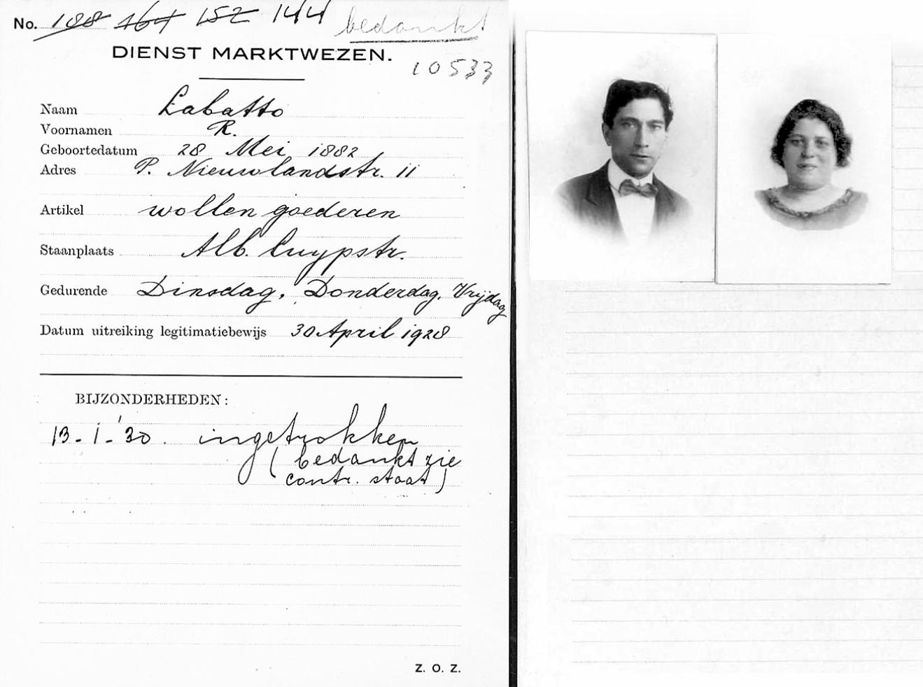 ABRAHAM VAN LOEN: Abraham van Loen was registered as a boarding house owner in 1941, but he was a diamond worker in Antwerp. After that he had a delicatessen shop on the Kerkstraat in Amsterdam.